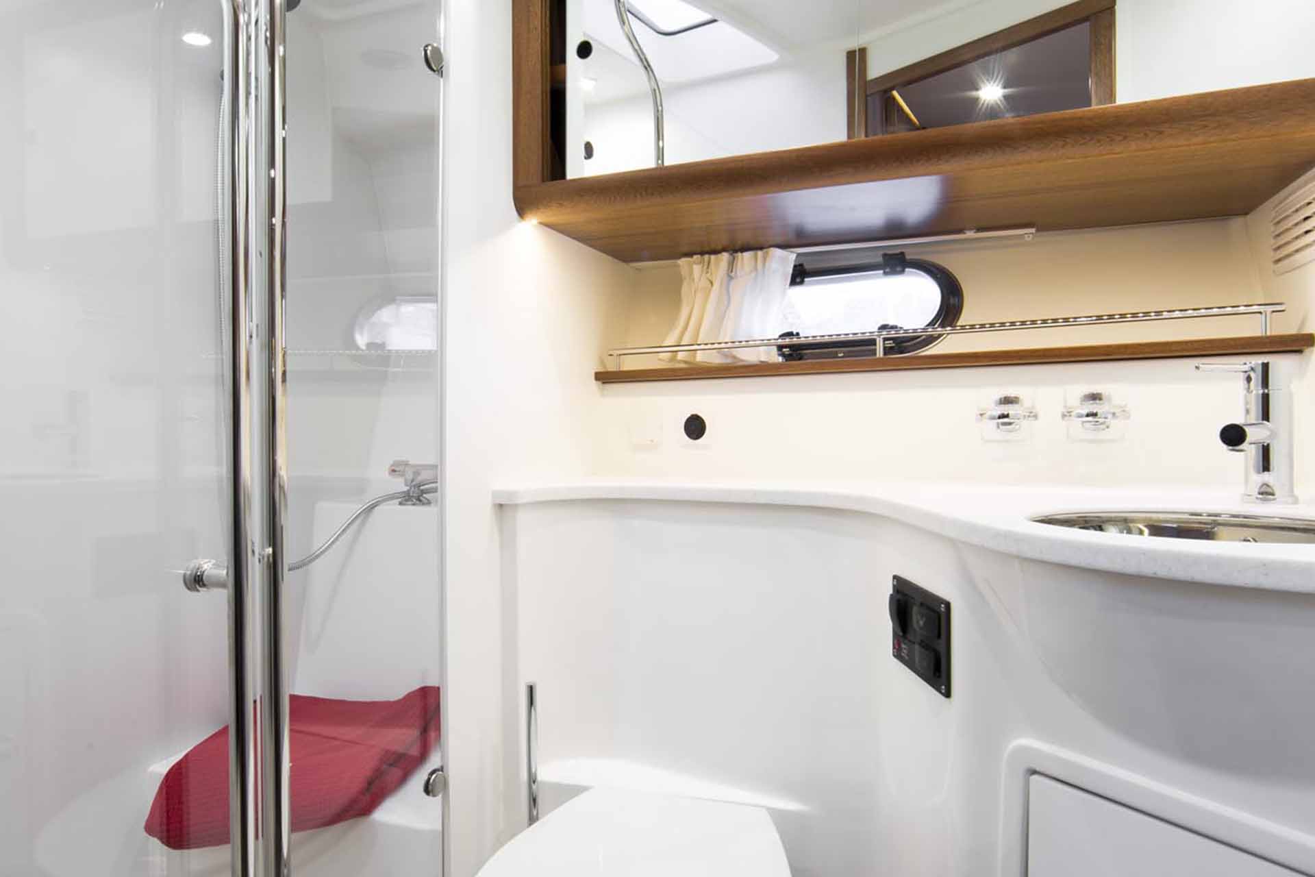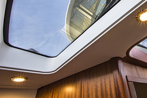 With its functional amenities and minimalist Scandinavian design, the Nimbus 405 Coupe makes life at sea comfy and luxurious. A spacious saloon with expandable seating and dining areas lets you enjoy meals and conversation, while a roomy cabin and ensuite head keep you cozy during overnight trips. Also, sliding glass roofs and wide windows increase natural light for a stunning, luminous look.